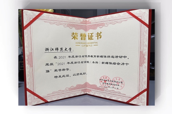 2021年度浙江省高校(本科)新媒体综合力十强荣誉证书。