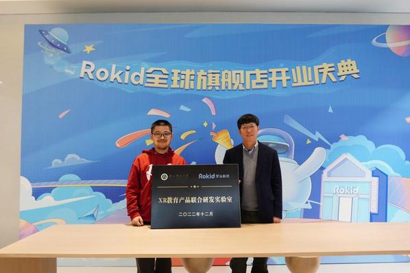 浙江师范大学与Rokid在XR教育产品研发上有着共识与共同的愿景,今日在Rokid全球首家品牌旗舰店开业现场,双方签署了战略合作协议,成立联合实验室,围绕“XR教育平台”,形成以XR技术为核心的智能视听场景。