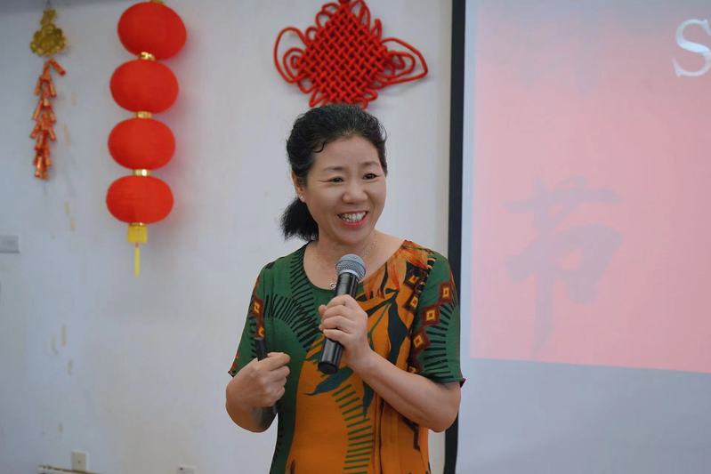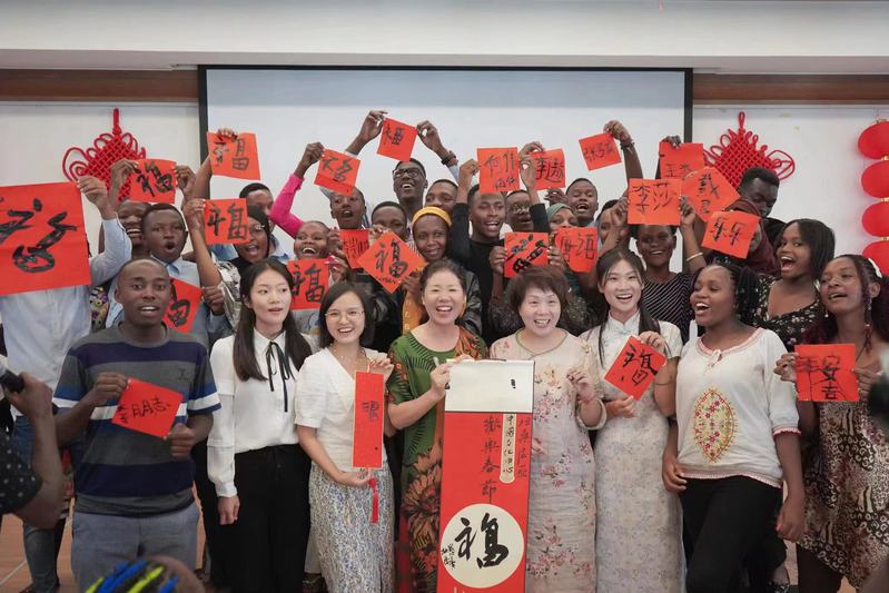 临近春节,位于非洲坦桑尼亚达累斯萨拉姆大学校园内,一场中国新春文化活动正在热闹举行。给非洲学生们讲解春联知识的正是这所大学的孔子学院中方院长张笑贞。