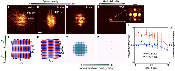 他们进一步利用高度可控的微波场实现了层间耦合和最低平带,并在强耦合极限下发现了新的关联量子相。实验直接观察到了空间摩尔纹和动量衍射,这证实了在扭曲双层晶格中,存在两种形式的超流体和一种超流体到绝缘体的转变。