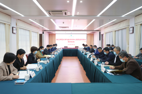 3月7日,浙江师范大学和金华市中心医院医联体合作协议签约仪式在行政中心多功能会议室举行。浙师大党委书记郑孟状、副校长潘慧炬,金医集团党委书记杜金林出席签约仪式。