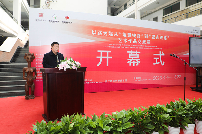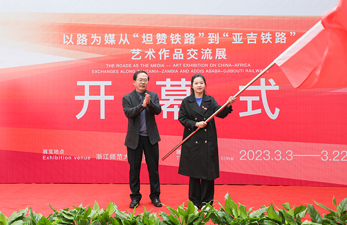 3月3日上午10时,由国家艺术基金管理中心资助,浙江师范大学、金华市文化广电旅游局主办,浙江师范大学设计与创意学院、非洲研究院(非洲区域国别学院)承办的国家艺术基金2022年度传播交流推广资助项目—“以路为媒—从‘坦赞铁路’到‘亚吉铁路’艺术作品交流展”首展开幕式在浙江师范大学美术馆举行。
