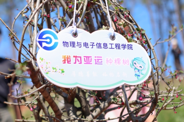 “我为亚运种棵树”“手植一抹青绿,共助低碳亚运”,各学院也定制了独具特色的标识牌挂在栽种的树苗上。体育与健康科学学院巧妙地将标识牌设计成树叶的形状。“初阳之意,在于希望”,初阳学院的标识彰显了学子的蓬勃朝气。“植万千树,育千万人”“植初心,树未来”“敦品敦学,为人为师”教育学院的三块标识牌上寄寓了学生对未来的憧憬。