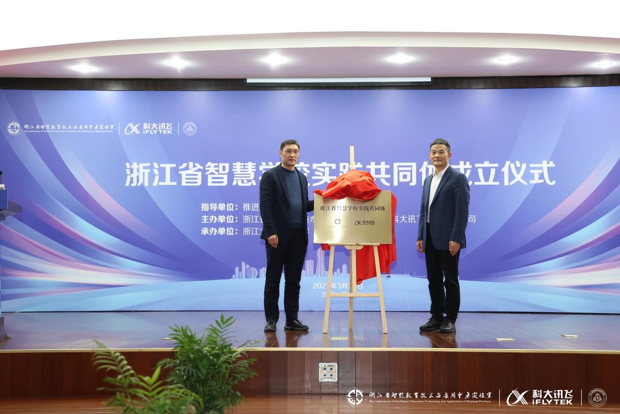 3月23日,在推进教育信息化应用名校联盟的指导下,浙江省智能教育技术与应用重点实验室和科大讯飞共同发起,联合浙江省内29所优秀智慧教育示范校成立“浙江省智慧学校实践共同体”,旨在搭建教育信息化共创共享平台,致力于服务学校教育教学发展。成立大会在浙江大学附属中学玉泉校区召开。