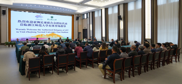 亚足联授权代表考察浙师大东体育场座谈会。浙师大融媒体中心 陈小备 摄