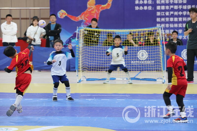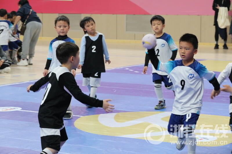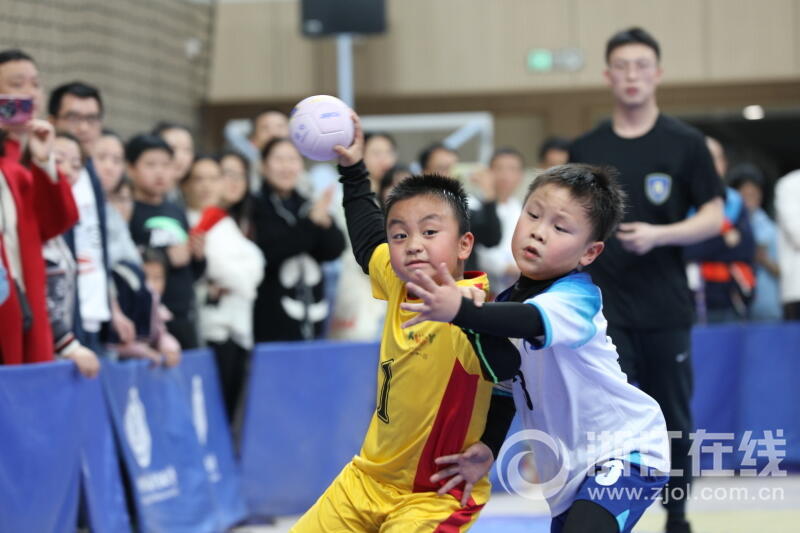 浙江在线4月3日讯(记者 徐文迪 摄)4月2日,杭州市2023年青少年手球锦标赛在2022杭州亚运手球场馆——浙江师范大学萧山校区体育馆举行。现场有近50个幼儿园近80只代表队参赛。