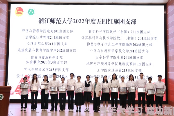 活动现场对浙江师范大学2022年度五四红旗团委、五四红旗团支部、十佳团干、十佳团员进行表彰。