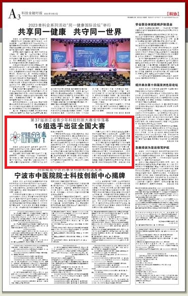 本报讯 由浙江省科协、省教育厅、省科技厅、共青团省委共同主办的第37届浙江省青少年科技创新大赛近日在金华圆满落幕。