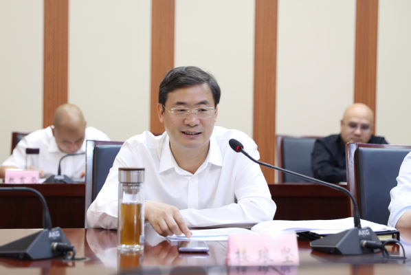 东阳市委书记楼琅坚对郑孟状一行的到来表示欢迎,对浙师大长期以来支持东阳发展表示衷心感谢,并简要介绍了东阳市经济社会发展情况。楼琅坚指出,浙江师范大学扎根金华,为推动区域经济社会发展发挥了积极作用,是金华之幸、东阳之幸。东阳是著名的“教育之乡”“建筑之乡”“工艺美术之乡”“影视文化名城”。近两年,东阳坚持以习近平新时代中国特色社会主义思想为指导,深入学习贯彻党的二十大精神,锚定方向、聚焦目标,各方面工作不断起势成势,发展氛围日益浓厚。东阳市非常欢迎浙师大学生来东阳就业、实践、旅游,相关部门单位将为此提供服务和支持。