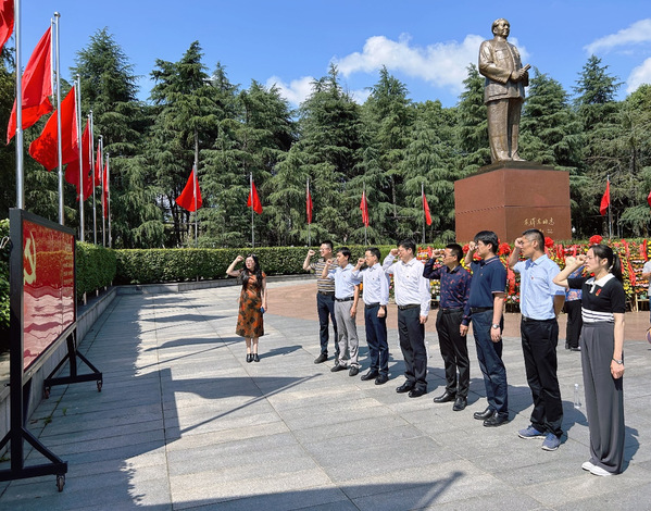 5月18日,蒋云良一行前往韶山开展“传承红色基因,汲取奋进力量”主题党日活动,缅怀伟大领袖,传承伟人精神。将主题教育活动与红色教育结合起来,将伟大建党精神和中国共产党的初心使命刻入每一位党员心中。蒋云良一行来到毛泽东铜像广场,怀着无比崇敬的心情向毛主席铜像行鞠躬礼。