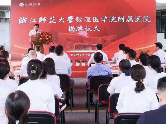 为适应新形势下新兴交叉学科医学教育和医疗卫生事业发展需要,进一步加大校院合作力度,深化医教协同,提高合作成效,6月12日下午,浙江师范大学数理医学院附属杭州整形医院揭牌仪式在杭州举行。浙师大党委书记郑孟状,杭州市卫健委党委书记、主任方健国,中信医疗集团党委书记韩光聚、副总经理郑晓等出席揭牌仪式。