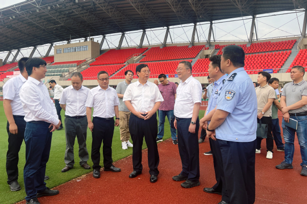 6月13日,金华市委副书记、市长邢志宏一行来浙江师范大学东体育场调研亚运测试赛筹办情况。副市长庄凌飞,市政府秘书长褚惠斌,浙师大党委书记郑孟状,副校长林一钢陪同调研。