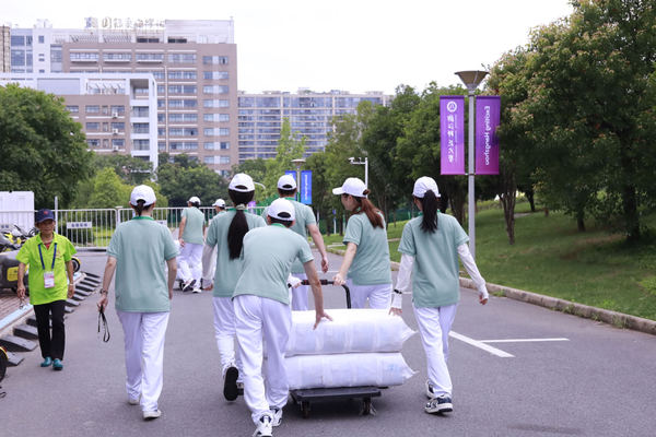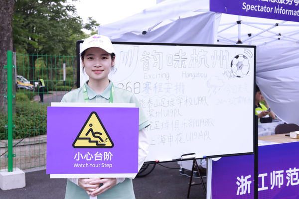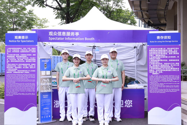 赛场下,为保障比赛的顺利进行,浙师大493名“小青荷”以最饱满的精神、最强烈的责任意识坚守在自己的岗位上,凭借着专业的素养高标准高质量地完成本次测试赛的各项工作任务。本次亚运会测试赛的志愿者们分为16个领域,经过几个月赛事概况、急救消防、礼仪口才、体能强化等方面的培训,“小青荷”们运用良好的知识技能、服务意识和服务能力,在各个领域发光发热。
