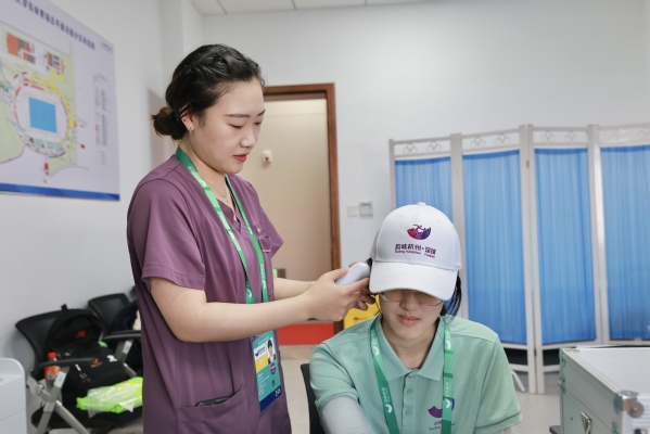 医疗服务领域观众医疗席的黄昱诚主要负责医疗物资的搬运,与医生一同对观众和其他观众服务类志愿者实施救助。黄昱诚表示,这个过程虽然会很辛苦,但是这都是在服务亚运会,他感到非常自豪。亚运会规模比此次测试赛更大,需要服务的观众和志愿者数量也更为庞大,他们将会做好充分的准备,希望到时候服务更多的观众和志愿者也能游刃有余、有条不紊。
