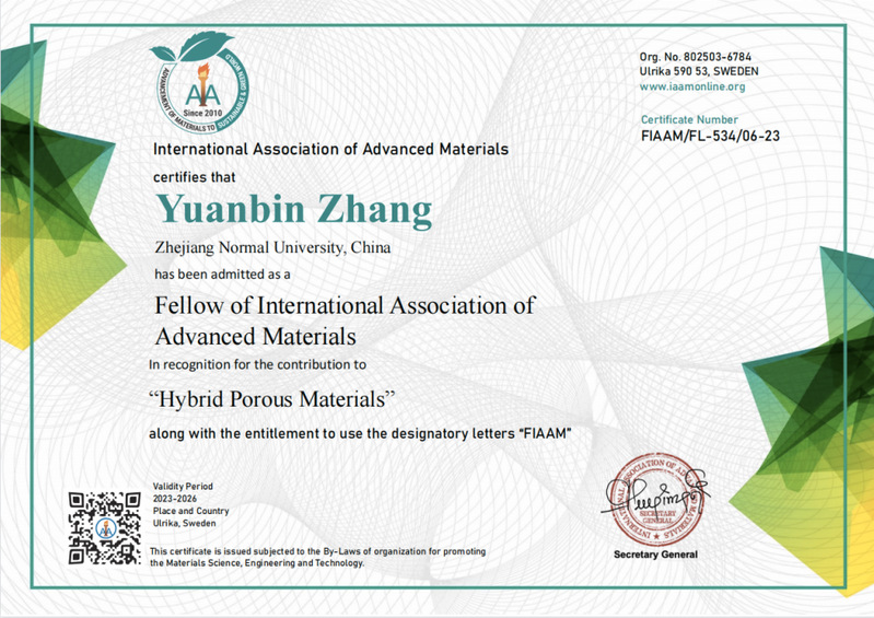 国际先进材料学会(IAAM,International Association of Advanced Materials)是活跃在全球先进材料领域著名的非营利性国际学术组织,致力于为先进材料科学、工程和技术在世界范围内快速发展提供一个高水平的学术平台;总部位于瑞典,现已发展成为材料科学领域各类学科领军人才的聚集者和领导者,有来自世界100多个国家的上万名会员。IAAM会士是国际先进材料学会授予世界范围内在材料科学、工程和技术领域做出了独创且重要研究的科研人员或科学家的荣誉称号,以表彰他们为先进材料界所付出的辛勤工作和努力,亦希望激发科研人员从事长期研究工作,推动世界材料科学的发展。