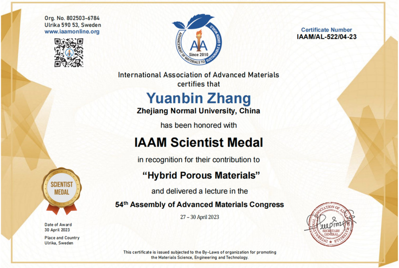 近日,化材学院双龙学者特聘教授张袁斌博士以其在“Hybrid Porous Materials”方面的杰出贡献,被推选为2023年国际先进材料协会会士(IAAM Fellow),并获国际先进材料学会科学家奖(IAAM Scientist Medal)。
