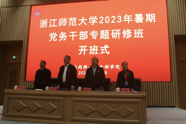近日,浙江师范大学2023年暑期党务干部专题研修班在青海两弹一星干部学院顺利举行。本次研修班主题为“学习‘两弹一星’精神,推进特色鲜明一流大学建设”。浙师大党委书记郑孟状出席开班仪式并讲话,党委副书记邵国平,校党委委员、组织部、统战部部长吕迎春出席开班和结业仪式。二级党组织书记、党群部门负责人和“双带头人”教师党支部书记代表参加培训。