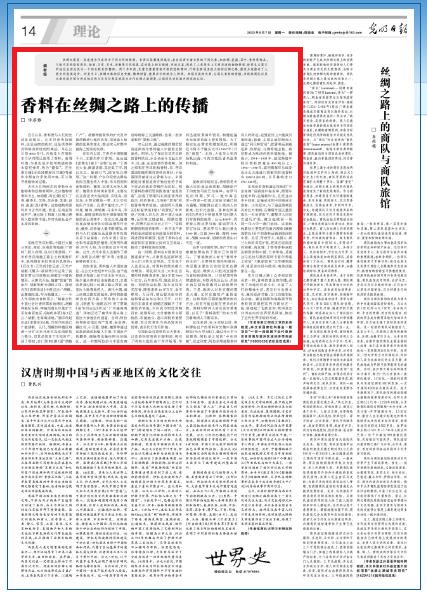 丝绸之路是一条连接古代东西方不同文明的桥梁。自西汉张骞通西域后,来自东西方诸文明的不同元素,如丝绸、瓷器、茶叶、香料等物品,川流不息的骆驼商队,绘画、文学、艺术、宗教等文化现象,在丝路上相互碰撞、交流互鉴,构成了人类历史上文明交流的独特景观,世界各主要文明地区也因此成为一个相互联系的整体。两千多年前,先辈们靠着坚韧不拔的进取精神,开辟出联通亚欧大陆的丝绸之路,强有力地推动了人类文明发展进步。时至今日,丝绸之路的历史贡献、精神财富、重要启示依然为人称颂。本期刊发的文章,分别从香料的传播、活跃的商队以及汉唐时期中国与西亚地区的文化交往等层面展示古代丝绸之路图景,以期深化对丝路史研究的认识。