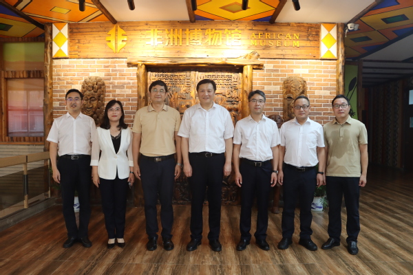在非洲研究院,胡伟走进非洲博物馆详细了解馆里珍藏的展品,并听取研究院的发展历史介绍,以及高质量推进对非交流合作情况。