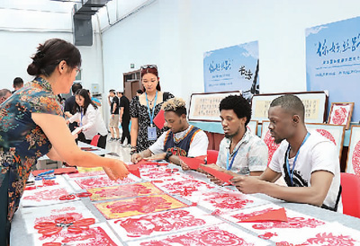 白碱滩区美术馆的体验则别具特色,这里收藏了克拉玛依市第三批非物质文化遗产“克拉玛依综合版版画新技法”300余幅作品,还设置了剪纸、国画、毛笔字、泥塑展览和体验区。在专家的指导下,来自格鲁吉亚的留学生李雅顺利创作了一幅水墨画风格的葡萄,引得大家拍手称赞。李雅激动地说:“我很喜欢中国文化,我打算留在中国,学习更多的中国文化。”