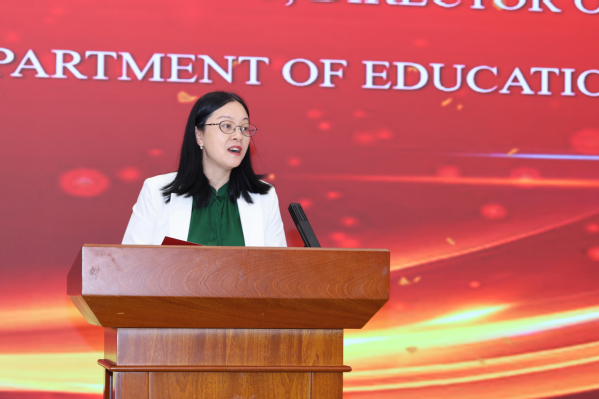 浙江省教育厅国际合作与交流处处长蓝晶晶致辞。浙师大融媒体中心 应琳歆 摄