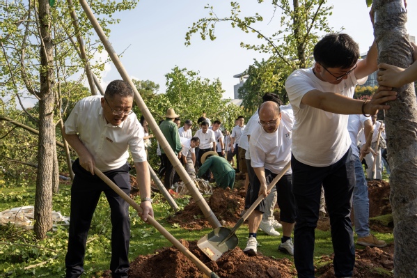 校领导与新教师一同在“杏坛”种下了银杏树。浙师大融媒体中心 李丰成 摄