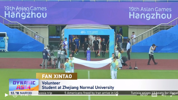 FAN XINTAO Volunteer, Student at Zhejiang Normal University I carried the flag at the entrance ceremony. We've been preparing for this moment for several months. This is my first time to stand on the arena of Asian Games. We're so happy and excited to see all the hard-work paying off.