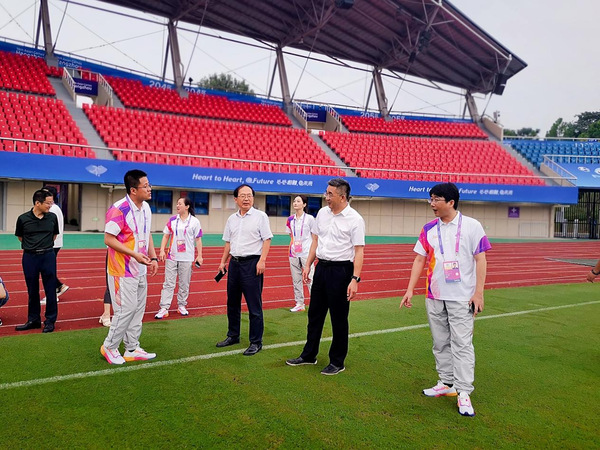 9月20日下午,浙江省教育厅二级巡视员张其宏一行来浙师大调研亚运期间校园安全稳定工作,浙江师范大学党委副书记邵国平,副校长、浙师大东体育场运行团队常务副指挥长林一钢陪同调研。