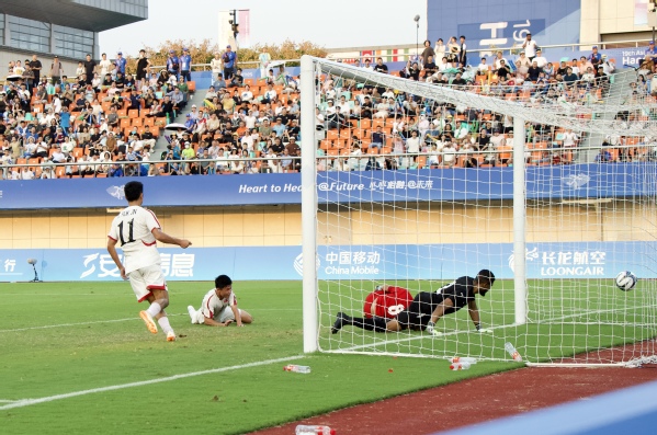 朝鲜队的进球瞬间。金彩云 黄泽振 摄