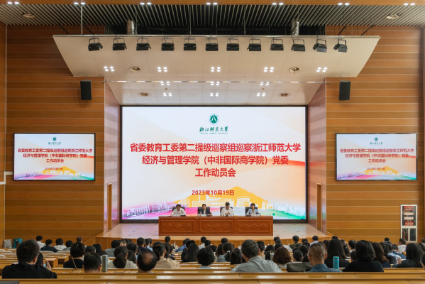 根据省委教育工委统一部署,10月19日上午,省委教育工委第二提级巡察组巡察浙江师范大学经济与管理学院(中非国际商学院)党委工作动员会召开。省委教育工委委员、省教育厅党组成员、省纪委省监委派驻省教育厅(省委教育工委)纪检监察组组长王健作动员讲话,省委教育工委第二提级巡察组组长杨林书介绍巡察工作安排,浙江师范大学校长、党委副书记蒋云良作表态发言,经济与管理学院(中非国际商学院)党委书记杨竞红作表态发言,会议由蒋云良主持。