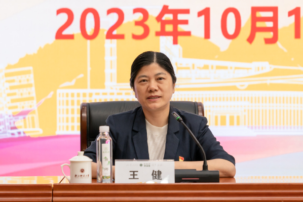 省委教育工委委员、省教育厅党组成员、省纪委省监委派驻省教育厅(省委教育工委)纪检监察组组长王健发表讲话。浙师大融媒体中心 李丰成 摄