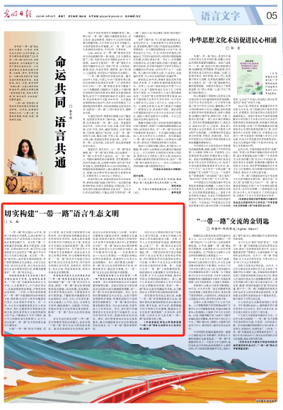 站在新的历史起点再出发,构建“一带一路”和谐健康的语言生态,需要中国和共建国家坚持共商共建共享原则,携手共进,同舟共济;需要跨越不同文明和文化的藩篱,畅通语言文化交流的“廊桥路带”,求同存异,合作共赢,以语言文字之基共筑“一带一路”高质量发展之路。