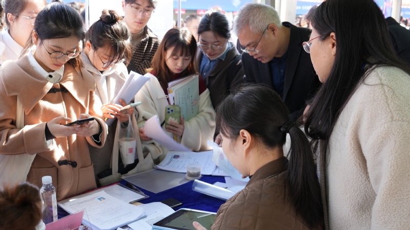 招聘会上,毕业生们纷纷向心仪单位投送自己的简历,与各个招聘人员面对面交流,积极展示自身优势,表达就业意愿。线下招聘会拉近了用人单位与毕业生之间的距离,推动两者之间实现“双向奔赴”。面对面交流既使得单位有机会更为立体、全面地了解学生,招聘到更多高质量人才,又有利于学生更为详细地了解单位情况,尽快找到合适、理想的工作。