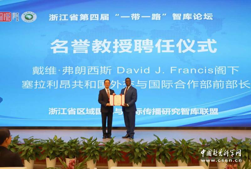 中国社会科学网讯(记者 王晏清)12月12日,浙江省第四届“一带一路”智库论坛在浙师大举办。本次论坛由浙江省社会科学界联合会指导,浙江省区域国别与国际传播研究智库联盟主办,浙江师范大学非洲研究院承办。塞拉利昂共和国外交与国际合作部前部长戴维·弗朗西斯,浙江省社会科学界联合会党组成员、秘书长刘东,浙江师范大学副校长张建珍,浙江省区域国别与国际传播研究智库联盟首席专家、浙江师范大学非洲区域国别学学部学术委员会常务副主任刘鸿武出席论坛开幕式并致辞。联盟成员单位负责人、专家代表、青年师生等近百人参加了会议。浙江师范大学非洲区域国别学学部学术委员会主任,中国前驻智利、东盟大使,中国国际问题研究院原院长徐步主持开幕式。