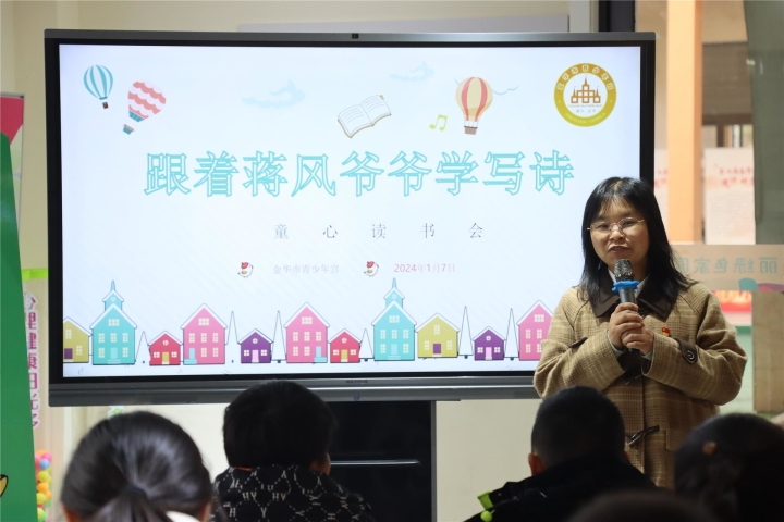 1月7日上午,“跟着蒋风爷爷学写诗”公益读书分享活动在金华市青少年宫公益小书房举行。蒋风儿童文学院的孩子们欢聚一堂,聆听蒋风爷爷的故事,学习儿童诗的写法,自由创作、快乐分享。