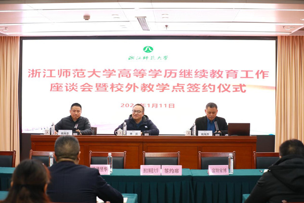 近日,浙江师范大学高等学历继续教育工作座谈会暨校外教学点签约仪式在行政中心多功能厅举行。浙师大副校长李盛出席会议并讲话。