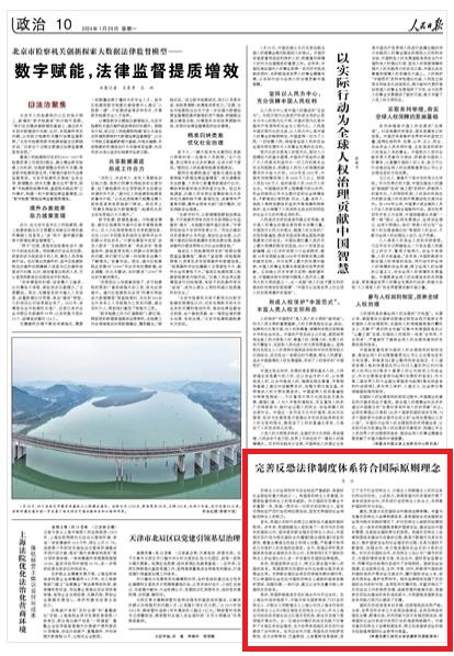首先,我国以实际行动捍卫以国际法为基础的国际秩序。多年来,我国相继加入或批准了一系列与反恐相关的国际公约,坚决落实联合国反恐怖主义决议;并坚持反恐行动与相关国际合作遵循《联合国宪章》宗旨和原则,尊重当事国主权独立和领土完整,严格遵守使用武力与保护人权的国际法规定。此外,我国还呼吁更多国家参加联合国相关反恐公约,支持制定《关于国际恐怖主义的全面公约》,进一步完善反恐国际法律框架。