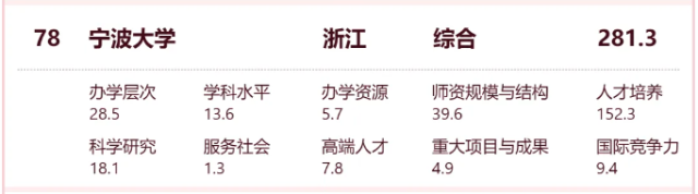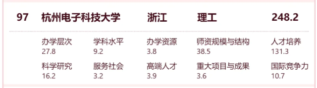 此外,进入综合性大学全国百强的浙江高校,还有宁波大学(78名)、浙江师范大学(88名)、杭州电子科技大学(97名)。