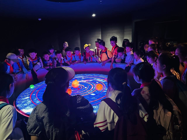 研学第一站:浙师大科技馆。这是一个集科普教育、学术交流、科技展示为一体的综合性场所。走进科技展览馆,那充满神秘的宇宙天体、趣味的倾斜屋、各式各样的动物标本使同学们更加直观、生动地了解了各学科知识。他们时不时驻足观看,惊叹连连。