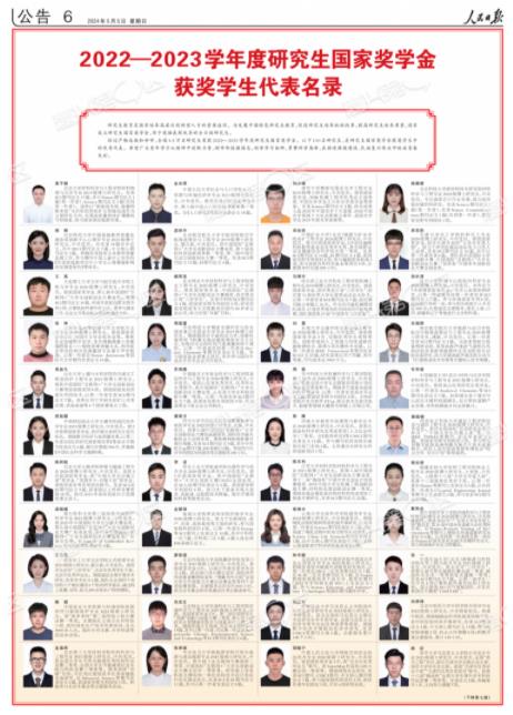 经过严格选拔和评审,全国4.5万名研究生荣获2022—2023学年度研究生国家奖学金。以下100名研究生,是研究生国家奖学金获奖学生中的优秀代表。希望广大青年学子从榜样中汲取力量,树牢科技报国志,刻苦学习钻研,勇攀科学高峰,在推进强国建设、民族复兴伟业中绽放青春光彩。