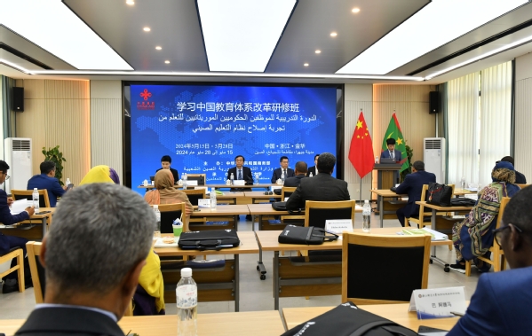 5月15日下午,由中华人民共和国商务部主办,浙江师范大学体育与健康科学学院承办的“毛里塔尼亚学习中国教育体系改革研修班”在浙江师范大学开班。毛里塔尼亚外交部、教育部、高教部、就业部、财政部、经济部、商业部、石油部、装备运输部、努瓦克肖特大学等部门和单位的29名学员参加开班仪式。浙江师范大学校务委员会副主任张根福出席开班仪式。