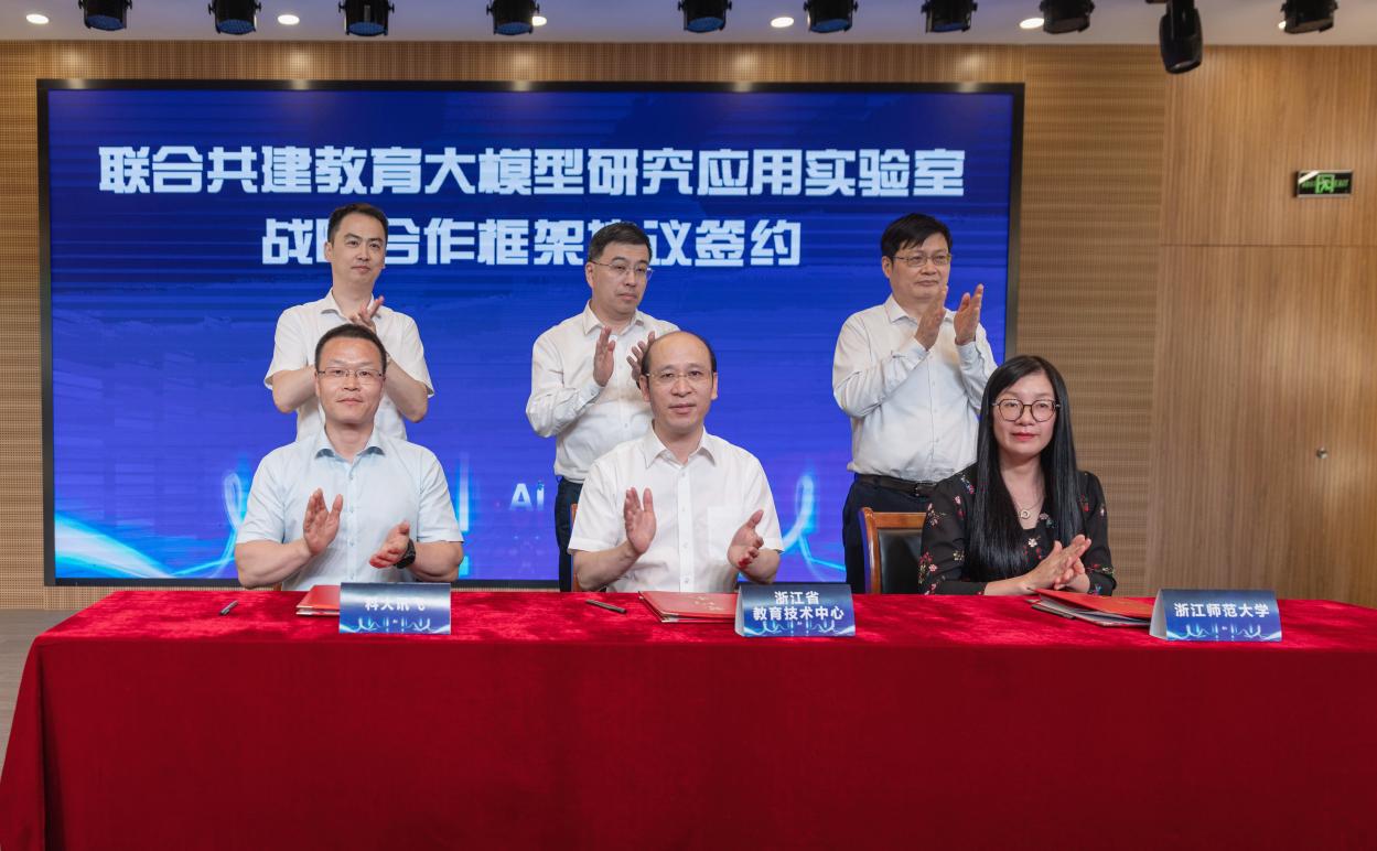 会上,浙江省教育技术中心、浙江师范大学与科大讯飞股份有限公司签署了联合共建教育大模型研究应用实验室战略合作框架协议。三方合作共建教育大模型研究应用实验室,深入推进教育大模型在教育应用的理论研究和实践探索,共同研究如何将大模型技术深度融入教育的各个环节,不仅展现了各方对教育数字化发展的共同愿景,也彰显了推动教育创新、提高教育质量的坚定决心。