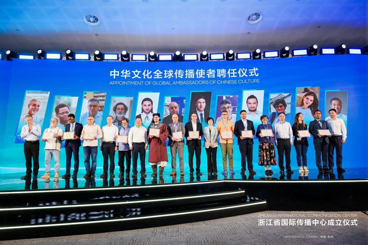 埃米尔受聘成为中华文化全球传播使者(左八)。图片来源 浙江省国际传播中心