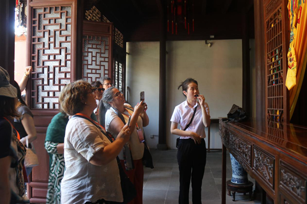 漫步在恬静素雅的后花园,访问团们近距离感受在“宋韵儒风”中渲染的衢州,面对孔府后花园里的美景,葡萄牙教育工作者Carlos Almeida惊叹道,“这是一个非常有趣的景象,是文化与自然相契合的产物。”