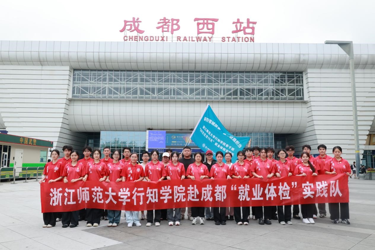 2024年7月15日,浙江师范大学行知学院25名学生骨干乘坐30多小时绿皮抵达成都,开启了一场为期15天的特别挑战——“50元就业体检”实践活动。学生们用仅有的50元启动资金踏入社会寻工作,通过这次活动,学生们不仅能够在实践中锻炼自己的能力,更能在挑战与机遇并存的环境中真切体验生活,同时学习成都深厚的文化底蕴。