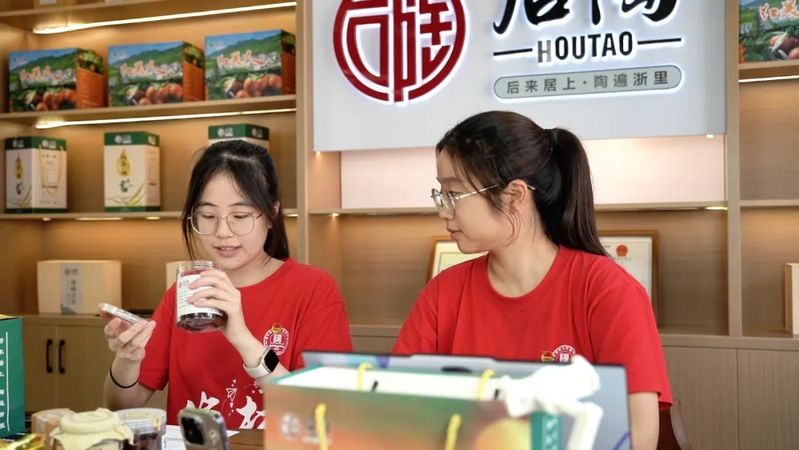 除了同一高校年复一年的接力,后陶村的振兴之路上还有不同高校之间、高校与村之间的接力。比如在新媒体运营方面,浙江师范大学主要负责直播卖货,而浙江经济职业技术学院则主要负责抖音、公众号、小红书等平台的维护、更新。