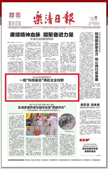 据悉,乐清还注重对“科技副总”的跟踪服务和考核评价,综合运用政策、金融等多元方式对“科技副总”及所在企业给予支持,确保“科技副总”引得进、用得好、见实效。