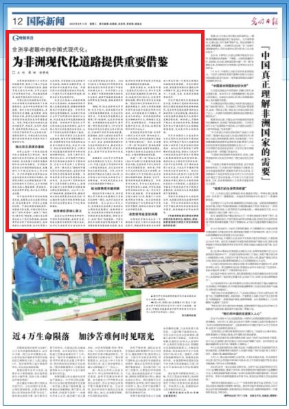 奥努奈居表示,如果有中国(发展现代化)的方式,那么肯定有尼日利亚(发展现代化)的方式、南非(发展现代化)的方式;如果有中国的道路,那么肯定有肯尼亚的道路。博茨瓦纳大学行政校长大卫·诺里斯曾表示,为什么非洲依赖国际货币基金组织或者世界银行的指令,而不能发展自己的模式、开发自己的理念?非洲要找到哪些是正确的合作方式,明确谁才是主导方,找好价值定位。中国在经济发展中有计划、有实施,这都是值得非洲学习的地方。