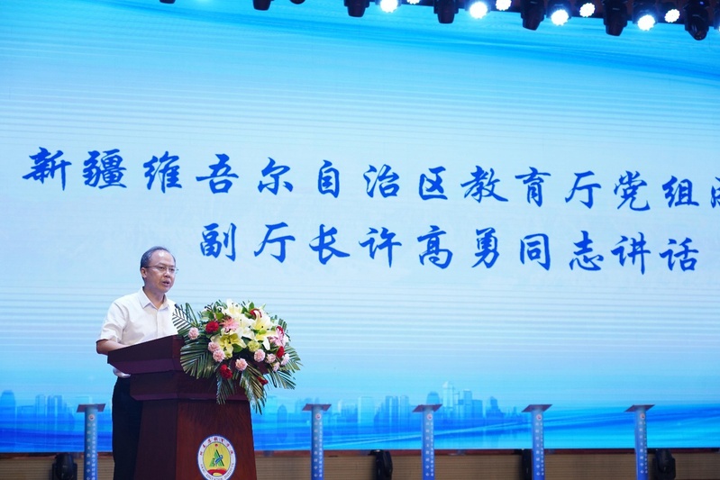 新疆维吾尔自治区教育厅党组成员、副厅长许高勇对南疆语文教研中心的成立表示祝贺。他强调,成立南疆语文教研中心是深入推进教育援疆的重要实践。当前南疆义务教育教学质量偏低,师资队伍相对薄弱,希望有关各方以南疆语文教研中心成立为契机,聚焦制约南疆基础教育质量提升的瓶颈问题,立足教研系统职能定位,深入教学一线,全面推进线上线下混合教研、区域间协同教育,加强语文课程建设与实施研究,更好发挥专业支撑作用,进一步完善教研工作体系,建立一支专兼结合的高素质、专业化、创新型教研队伍,持续深化课程教学改革,巩固提升国家通用语言文字教育教学效果,推进数字赋能教研,为加快教育强区建设作出积极贡献。