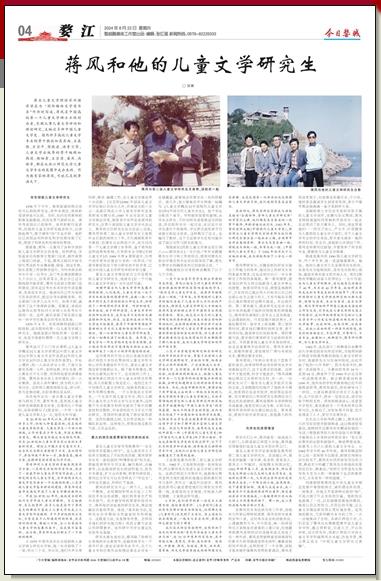 著名儿童文学理论家方卫平是蒋风的儿童文学研究生,他曾在《论一个可能的儿童文学学派》一文中这样写道: